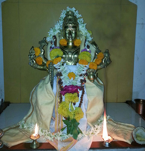 मूर्तीसह नाना अक्कलकोटला पोहोचले. स्वतः श्रींनी मूर्तीला औक्षण करून अभिवादन केले. शिवमंदिरात सोमेश्वरलिंगाच्या बरोबर समोर ही मूर्ती पूर्ण एकवीस दिवस निवासाला होती. नित्य नियमाने 'श्री' स्वतः तिची पूजा करीत होते. जणू त्या मूर्तीमध्ये शक्तीस्थापना करीत होते. एकवीस दिवसानंतर गणेशवाडी गावचे एक व्यापारी श्री. गजाननराव डफळापुरे यांनी नवीन घेतलेल्या जीपमधून ही मूर्ती गणेश वाडीला आली. मूळ घरी चिमणाबुवांना मिळालेल्या प्रासादिक मूर्तीजवळ या मूर्तीचा पंधरा दिवस निवास होता. स्थापनेच्या दिवशी ही मूर्ती कवठे गुलंद गावी आणली गेली होती.